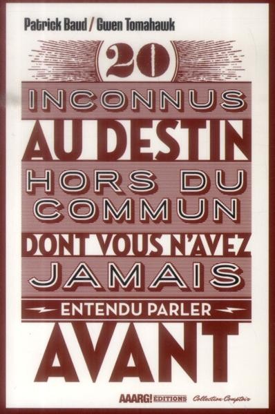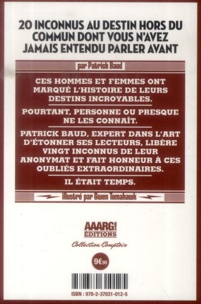 Résumé: Un homme qui survit à deux bombes atomiques, un autre qui sauve plus de 2 millions d'enfants grâce à son sang, ou encore une femme qui résiste à tous les naufrages... De telles histoires vous semblent improbables ? Elles sont pourtant bien vraies. Et nombreuses. Grâce à Patrick Baud, célèbre auteur des vidéos à succès Axolot, et Tomahawk, portraitiste singulier, découvrez la vie stupéfiante de vingt individus dont on ne vous a jamais parlé à l'école. Mais dont vous vous souviendrez sans aucun doute.