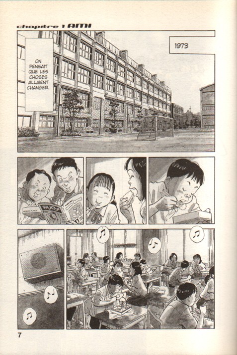 Pour tous ceux qui avaient adoré "It", pour le travail magique de Stephen King sur les souvenirs d'enfance et la manière dont ils fondent notre vie, Naoki Urasawa propose une version actualisée (avec secte tentaculaire et terreur millénariste remplaçant avantageusement le clown-araignée un peu grand guignol de King) de la même histoire. Le premier volume de "20th Century Boys" - clin d'oeil à la grande chanson de T. Rex, et hommage au rock comme déclencheur de notre éveil au monde - nous ballade avec une intelligence constante entre un présent trivial et menaçant (les piètres adultes que nous sommes devenus, face à un monde oscillant entre banalité insupportable et cruauté incompréhensible) et un passé - notre enfance, donc - pas si idyllique que cela, mais dans lequel tout était encore possible. Tout ceci est régulièrement bouleversant - on y retrouve facilement les échos, à peine déformés, de nos propres vies -, mais surtout incroyablement excitant, tant ces 200 premières pages d'un manga considéré au Japon comme "essentiel" débordent littéralement de potentiel imaginaire. Déjà addictif !Le 17/12/2005 à 11:28:09