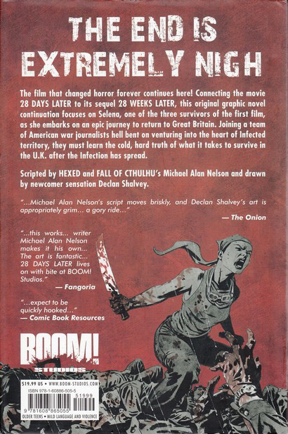 Édition cartonnée avec jaquette et signet, et galerie de couvertures. Collects: 28 Days Later (2009) #1-4