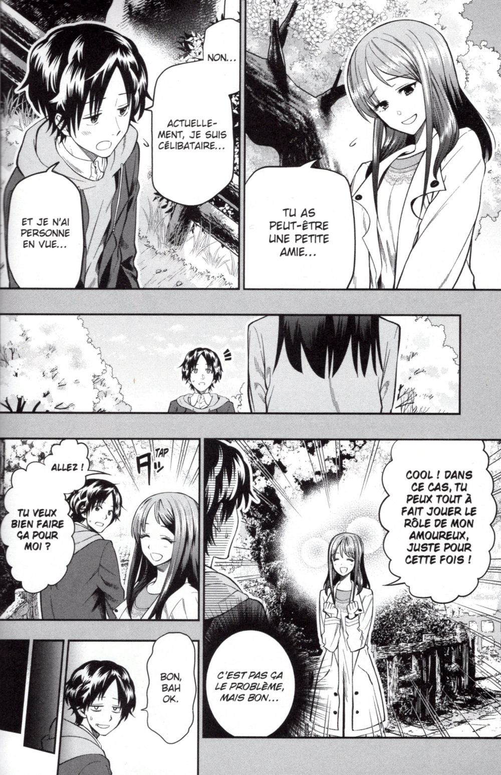Etant "orphelin" de mangas dans le genre romantique "video girl Aï", j'ai tenté ma chance avec ce manga. Pas de bol, c'est une histoire en 2 tomes, et je ne l'avais pas vu alors que c'est écrit sur la jaquette... Bon tant pis, je l'ai acheté, je l'ai lu. Alors c'est pas mal. J'y retrouve la force des mangas, ces sentiments innocents et tendres de nos jeunes années, tranquillement incarnés, sans fausse pudeur. On est dans le roman à l'eau de rose asiatique, autour de jeunes étudiants, et c'est plutôt plaisant à lire et bien dessiné. L'histoire va quand même (trop) vite se terminer, c'est dommage, j'en aurais bien repris pour quelques tomes de plus. J'espère juste une fin pas trop triste. On verra bien. Car je vais lire la suite et fin, c'est sur !BDGest 2014 - Tous droits réservés
