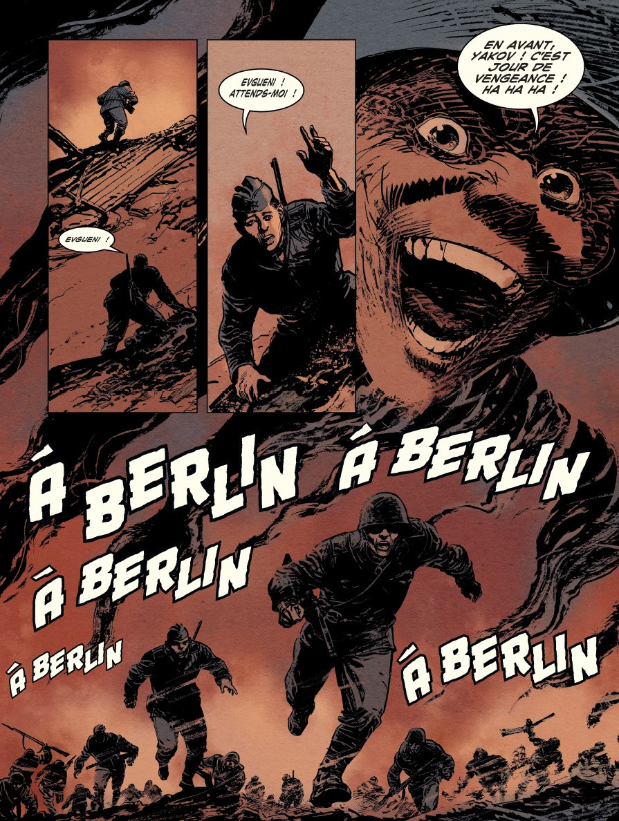 Plutôt que de s'attacher à la 3e Kamera, les auteurs se sont attachés aux personnages de l'histoire... à l'inverse finalement de ce qu'ils ont fait pour 'La Bombe', ou le principal protagoniste était bel et bien la bombe... Tout tourne autour d'elle, et les personnages sont secondaires... Du coup, la 3e Kamera est passée au deuxième, voir au troisième plan. Les auteurs ont développé tout un tas de personnages, trop peut-être, sans en approfondir aucun. Le sujet de l'histoire aurait tout aussi bien pu être 'la vie à Berlin au lendemain de la capitulation nazie'. Ça aurait été plus pertinent que cette histoire de 3e Kamera. Finalement le véritable sujet ne décolle pas avant les quelques dernières pages. C'est ce qui a suscité le plus d'intérêts pour moi. Mais bien sûr, c'est traité bien trop rapidement, avec des idées qui auraient largement dûes être développées sur l'ensemble du récit, pas juste dans les deux dernières pages. Au bout du compte, c'est bâclé, les auteurs sont passés à côté du sujet, et c'est très dommage. Je rajouterai même que la plupart des dialogues sont d'une platitude à toute épreuve et n'apportent rien de concret au sujet de l'histoire. C'est du remplissage pour faire du remplissage. Heureusement, les dessins sont excellents... Mais je ne suis pas certain que le choix d'avoir un album en couleur sert veritablement le sujet... je pense que le N&B aurait été plus efficace. C'est quand même à lire au moins une fois par respect aux auteurs de 'La Bombe'.Le 17/02/2025 à 18:19:00