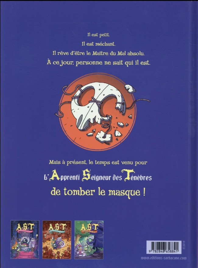 Résumé: Dans ce tome 3, nous retrouvons notre minuscule et redouté Apprenti Seigneur des Ténèbres (A. S. T.) qui, ayant vaincu l'infââââme Stéaras (voir tome 2), ayant jeté le roi dans les oubliettes, est enfin monté sur le trône ! Il est désormais le seul, unique et incontesté Maître des Ténèbres. D'ailleurs, tout irait pour le mieux, si ses sujets ne le trouvaient pas... si mignon ? Quoi ? Mignon ??!! Lui, A. S. T. ? Déprimant. Il trouve alors LA solution, et après avoir rendu sa couronne au roi, il part à la recherche d'une relique qui devrait l'imposer définitivement aux yeux de tous comme le plus terrible tyran de tous les temps. Accompagné de ses fidèles compagnons, Gonzague gobelin bossu et stupide (quoique), de Slurp monstre aussi sympathique que doux, et de la fille du roi (son amie), le voyage ne sera pas de tout repos et surtout, la fin de l'album réserve une conclusion absolument renversante...