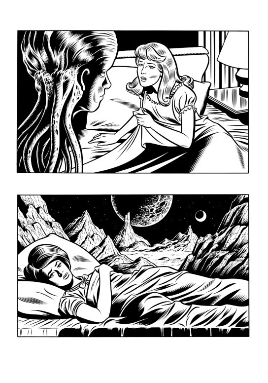 Dans Sweet dreams, Charles Burns joue, non sans humour, avec ce regard masculin qui a façonné pendant longtemps l’imaginaire collectif, pour mieux questionner la représentation de la femme dans la bande dessinée américaine. L’image édulcorée de la jeune fille innocente laisse ainsi place à des tourments plus sombres, redonnant à l’inconscient ses lettres surréalistes. Entre hommage et détournement, cette série d’illustrations nous plonge dans des rêves inquiétants, qui exercent tout leur pouvoir de fascination.