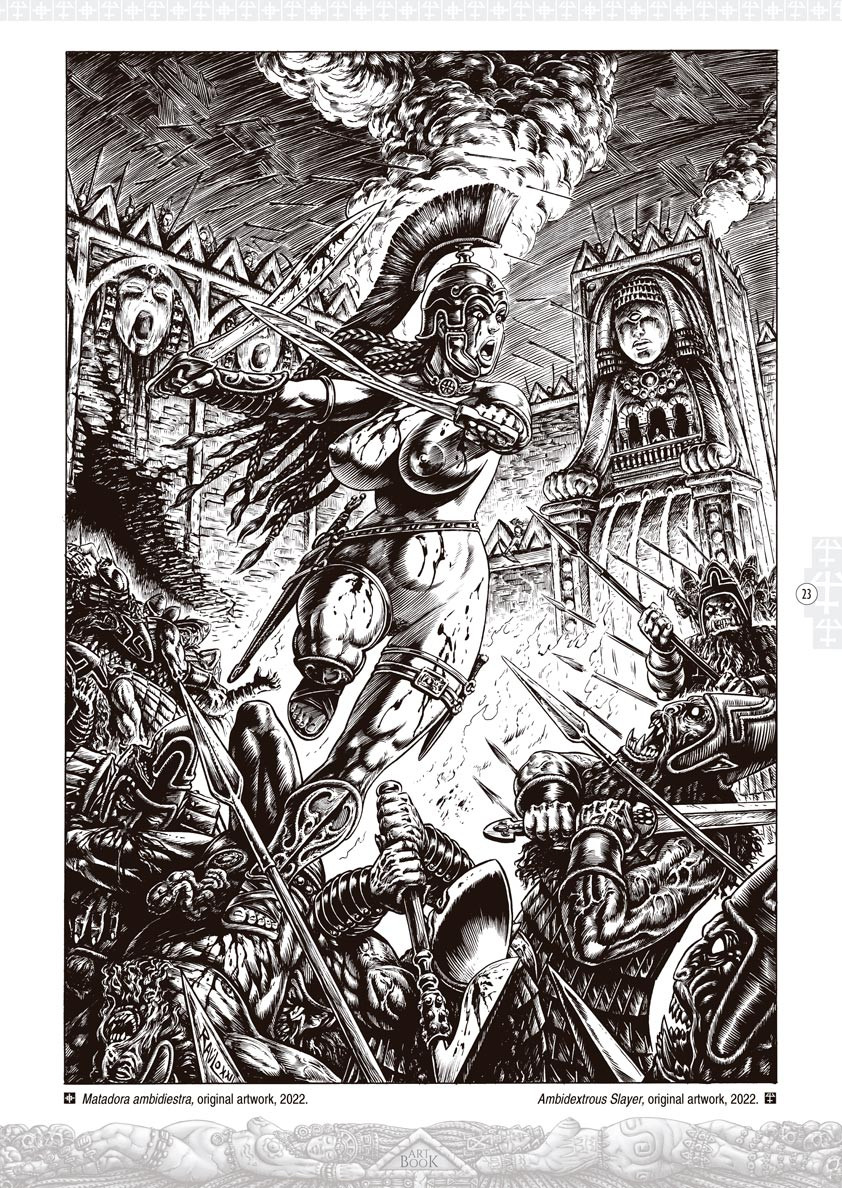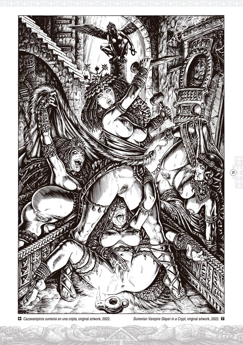 Résumé: Nouvelle compilation des dernières illustrations réalisées par l'artiste pour divers collectionneurs, ainsi que d’autres œuvres et collaborations diverses. Centrée sur les femmes et le sexe, cette sélection qui va de l’insinué à l’explicite nous engage une fois de plus dans des plaisirs exotiques et des fétichismes mystérieux, mêlés de fantaisie et de pulp le plus bizarre. Préparez vous à être trempé dans l’or liquide, le nectar blanc et le sacrifice cramoisi, que les déesses, reines, prêtresses, guerriers et sangsues déverseront de leurs coupes pécheresses pour empoisonner votre âme