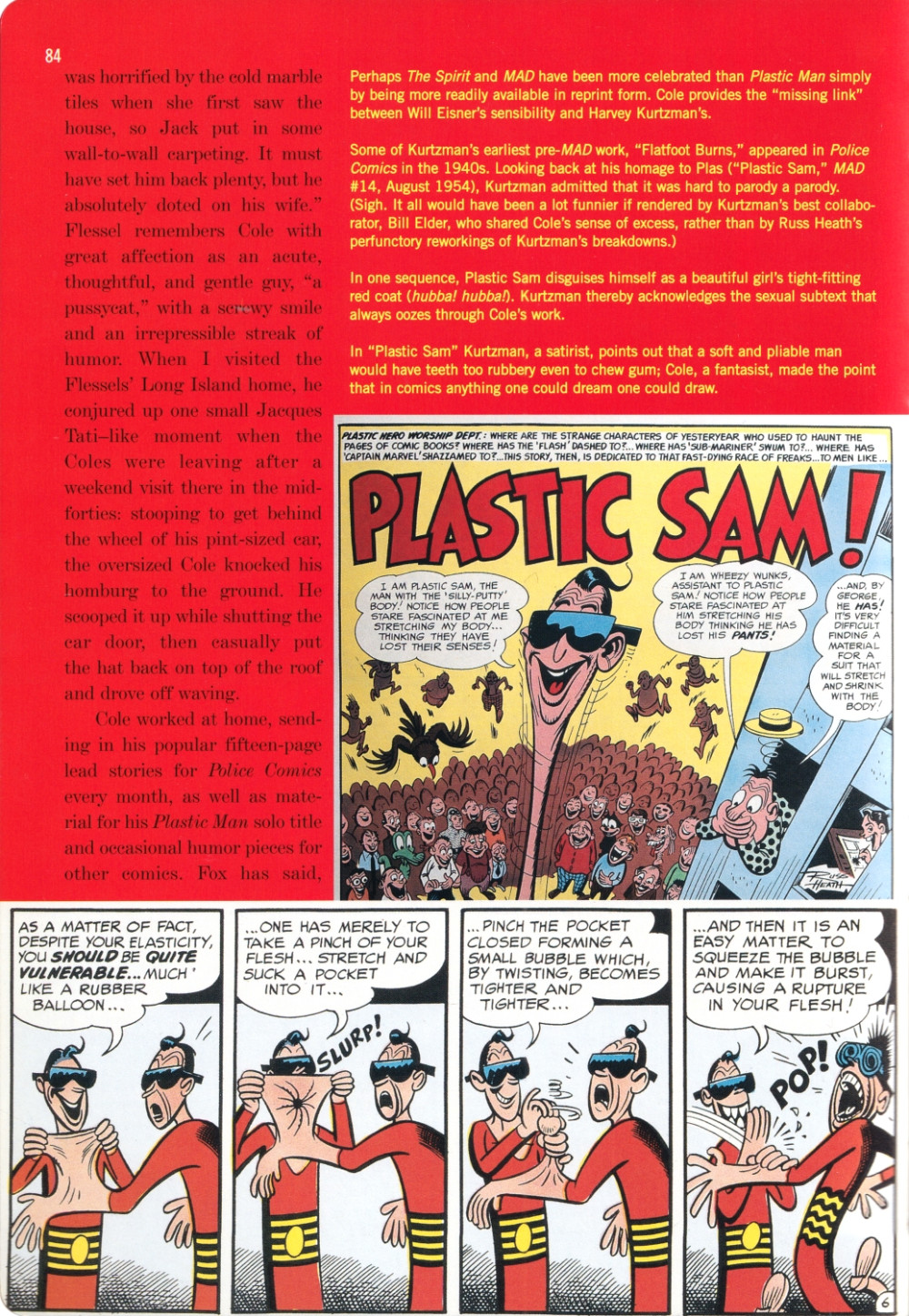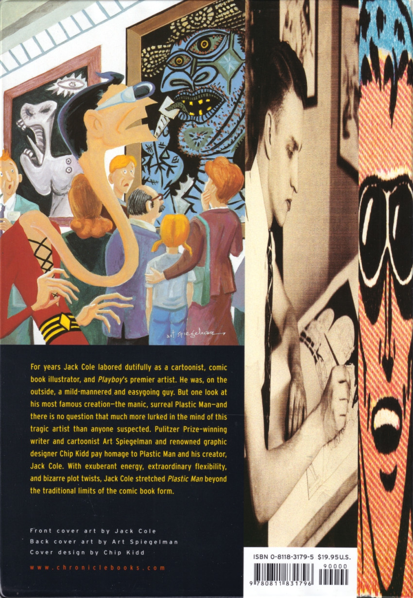Info édition : Couverture souple plastifiée, pages avec coins ronds. L'ouvrage alterne deux catégories de cahiers : textes d'Art Spiegelman et collages pop-art de Chipp Kidd sur papier mat épais, et fac-similé d'histoires de Plastic Man tirées de Police Comics (1941) et de Murder, Morphine and Me publié dans True Crime (1947) #2 sur papier non couché jauni.
