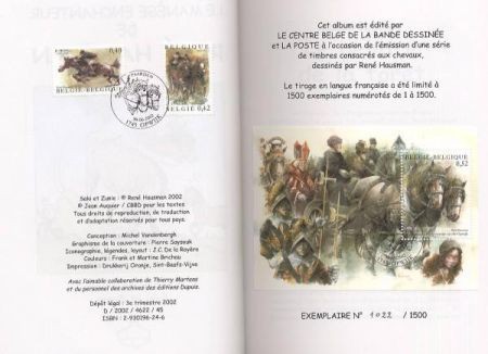 Le tirage en langue française a été limité à 1 500 exemplaires numérotés de 1 à 1500. Avec les 3 timbres belges d'Hausman, avec cachet 1er jour du 30-06-2002. Format A5.