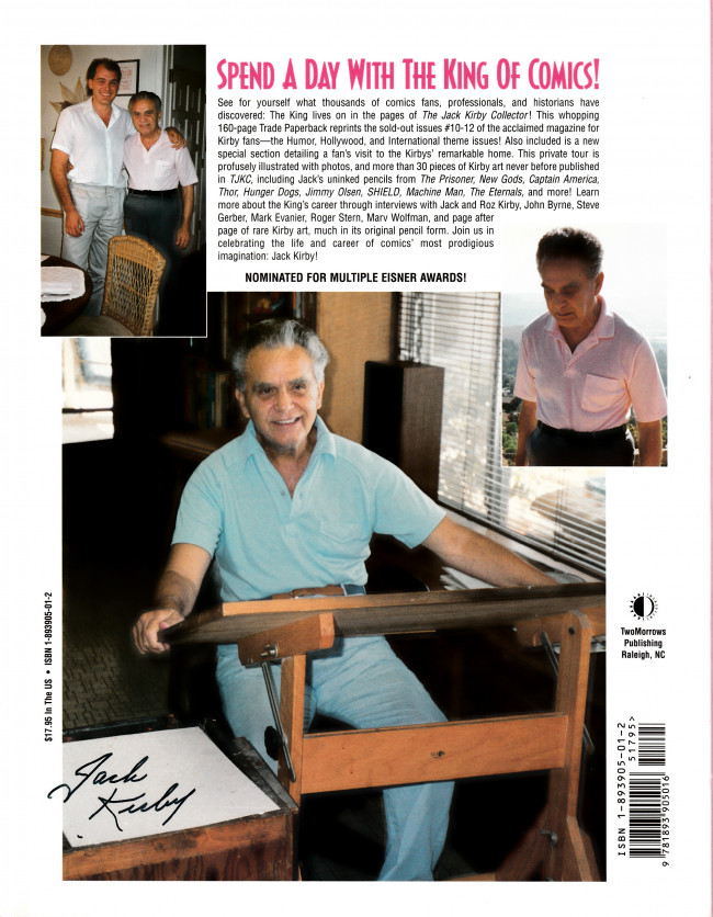Résumé: This trade paperback reprints the sold-out issues #10-12 of the bi-monthly magazine for Kirby fans and includes a new special section detailing a fan's visit to the Kirbys' remarkable home. This private tour is profusely illustrated with photos, and more than 30 pieces of Kirby art never before published in TJKC, including Jack's uninked pencils from The Prisoner, New Gods, Captain America, Thor, Hunger Dogs, Jimmy Olsen, SHIELD, Machine Man, The Eternals, and more! Learn more about the King's career through interviews with Jack and Roz Kirby, John Byrne, Steve Gerber, Mark Evanier, Roger Stern, Marv Wolfman, and page after page of rare Kirby art, much in its original pencil form. Join us in celebrating the life and career of comics' most prodigious imagination: Jack Kirby!