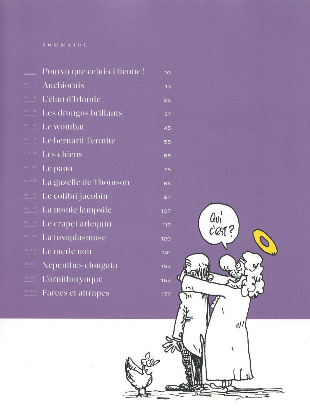 Imaginons que Dieu s’obstine à vouloir penser qu’il a créé le monde et que Darwin s’efforce de le convaincre que ce n’est pas vrai. Comment Dieu pourrait-il lui expliquer que le travail ait été parfois à ce point bâclé ? Le bernard-l’ermite doit se débrouiller sans coquille, l’élan d’Irlande n’a pas survécu, les paons sont vrai-ment trop voyants. Sans compter toutes ces bizarreries : des wom-bats qui défèquent des cubes, des gazelles qui cabriolent en présence du lion, des rats qui font des avances aux chats, des ornithorynques qui semblent avoir mélangé les espèces ou des plantes carnivores qui s’acoquinent avec des chauves-souris. Sans compter tous ces comportements franchement contraires à la morale, les men-songes, les ruses, les vols et bien d’autres turpitudes. Et si toutes ces créatures témoignaient de l’invraisemblable inventivité de la vie, qui essaye, qui risque, qui rate, qui réussit, qui recommence.