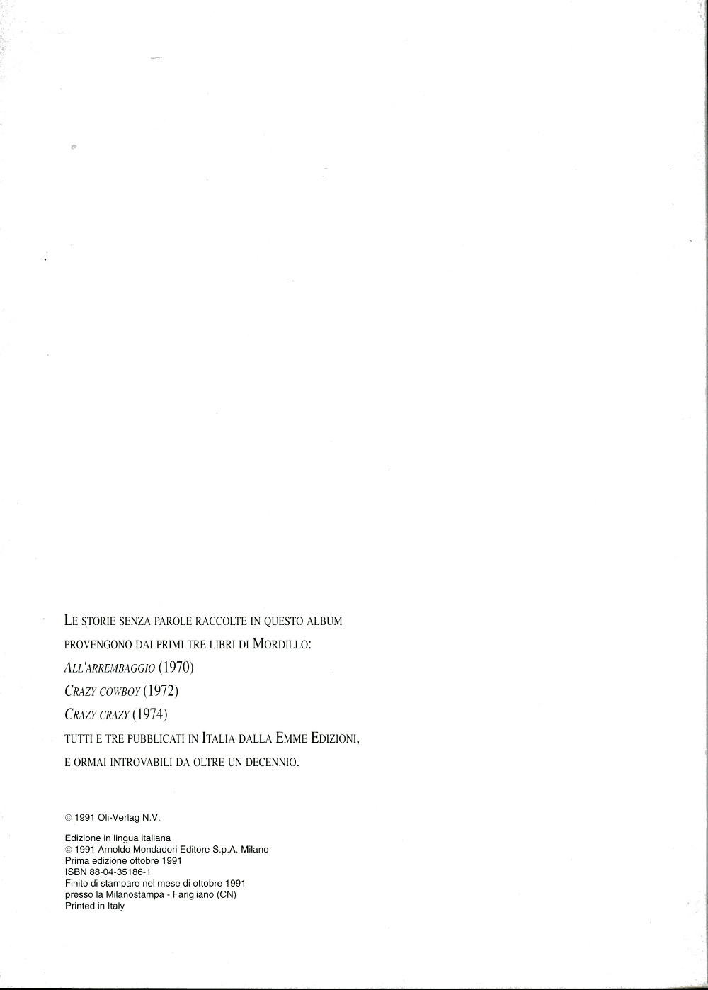 Info édition : Édition italienne. Nombreuses doubles pages, aucun texte. Prix 27.000 Lires. Comprend des planches du "Galion", "Crazy cowboy", "Crazy crazy"