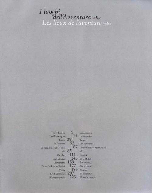 Catalogue bilingue (italien/français) de l'exposition "Hugo Pratt - Les lieux de l'aventure" qui s'est tenue du 08.07.2011 au 02.10.2011 au musée d'art de Lugano.