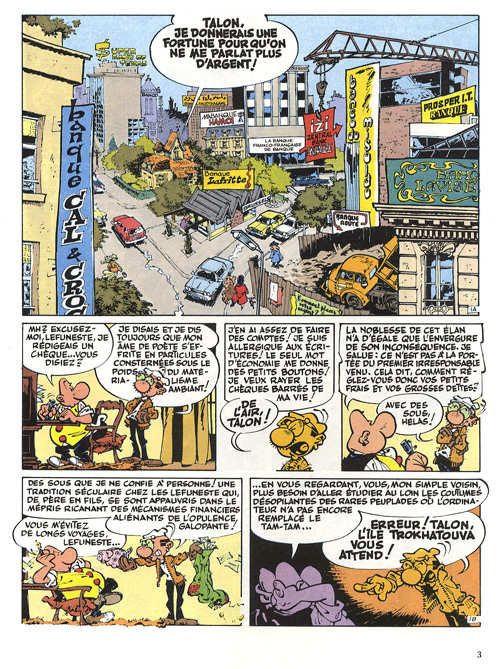 Résumé: Lefuneste en a assez de la société de consommation et décide de partir pour l’île de Trokhatouva. Ce lieu ignore totalement l’usage de l’argent et semble attirer les idéalistes qui refusent le règne de la finance. Achille Talon, méfiant mais curieux, décide de partir avec Lefuneste pour vivre cette expérience.