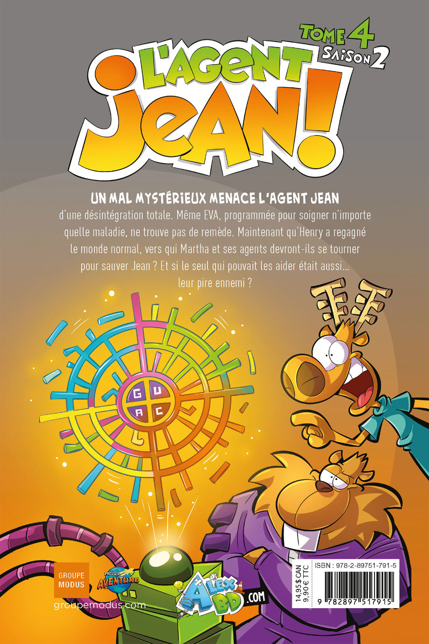 Mini-phénomène éditorial québécois, L’Agent Jean ! connaît un succès jamais démenti depuis son apparition en 2015. Douze tomes et une adaptation télé après, Alex A. continue d’animer avec le même dynamisme les aventures burlesques et échevelées de son héros et de ses collègues et amis de la mystérieuse Agence. Design vitaminé entre cartoon et comics jeunesse, une distribution anthropomorphique sympathique (même les méchants), des clins d’œil à gogo et une énergie de tous les instants, les scénarii ne cherchent pas midi à quatorze heures et misent tout sur une avalanche continuelle d’actions improbables et de gags bon enfant. La lecture ressemble à une partie de Calvin Ball déchaînée et, peu importe les incohérences et les coups de théâtres rocambolesques, tout le monde en redemande !