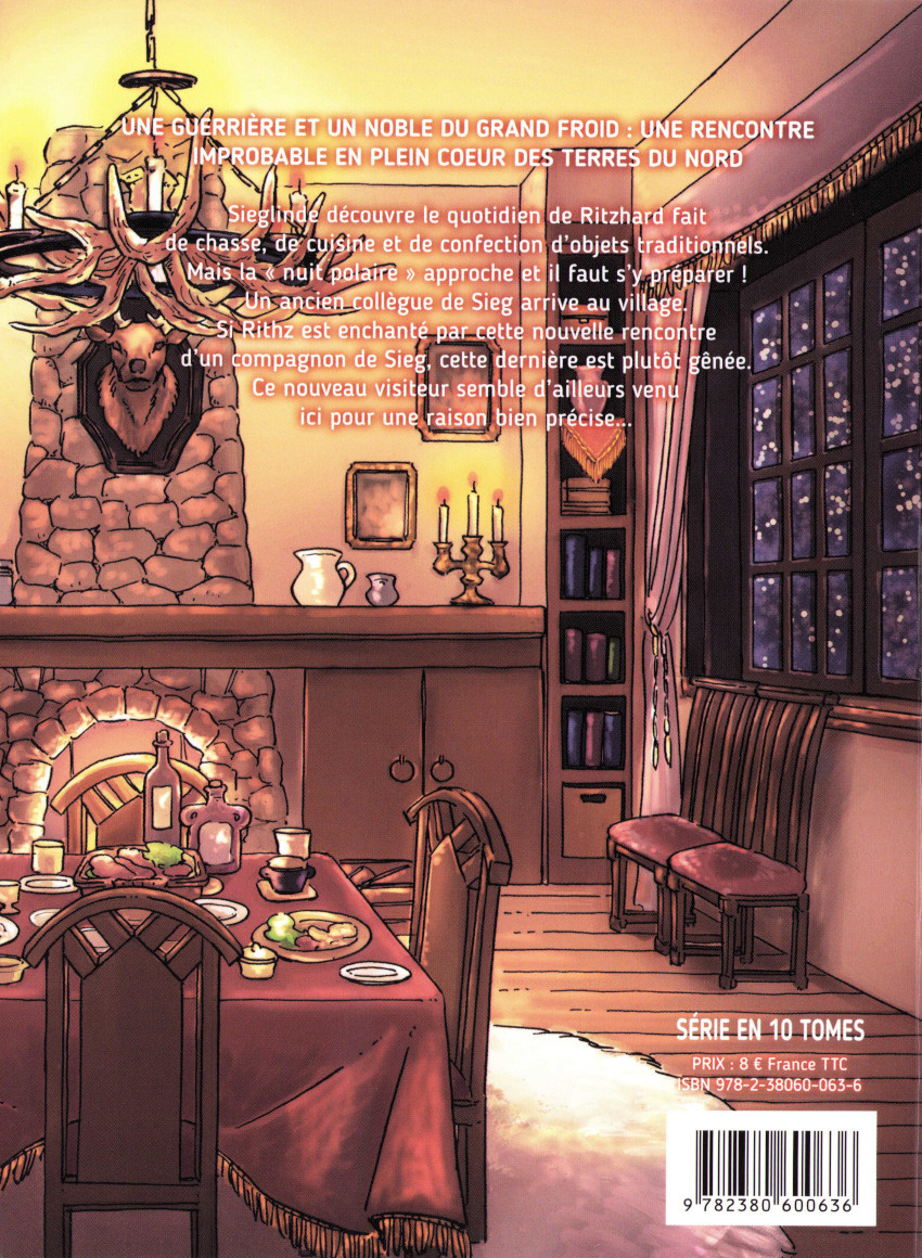 Résumé: Sieglinde découvre le quotidien de Ritzhard, fait de chasse, de cuisine et de confection d'objets traditionnels. Mais la «nuit polaire» aproche et il faut s'y préparer ! Un ancien collègue de Sieg arive au vilage. Si Rithz est enchanté par cette nouvelle rencontre d'un compagnon de Sieg,cette dernière est plutôt gênée. Ce nouveau visiteur semble d'aileurs venu ici pour une raison bien précise...
