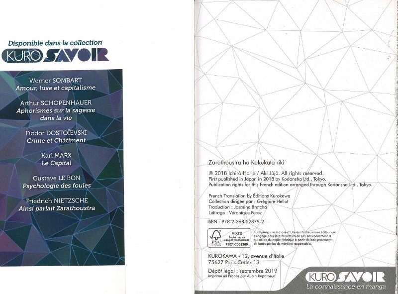 Info édition : Avec jaquette illustrée. Sous titré : Dieu est mort !