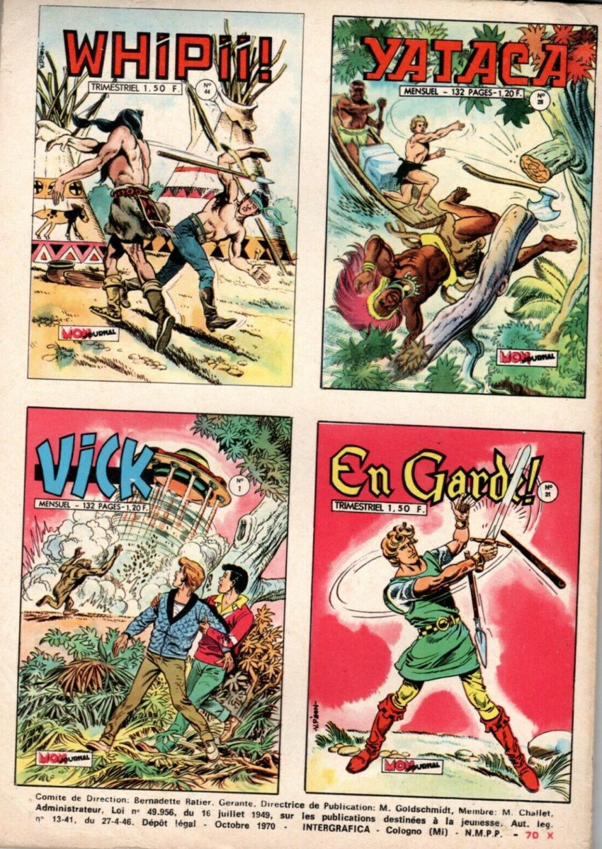 Akim : Kar mène la bataille par Roberto Renzi (sc) et Augusto Pedrazza (des) (55 pl) - Archibald : (la baignoire) par Guy Lehideux (sc et des) (1 pl) - Chris et Carry : Le secret de la Dame Blanche (32 pl).