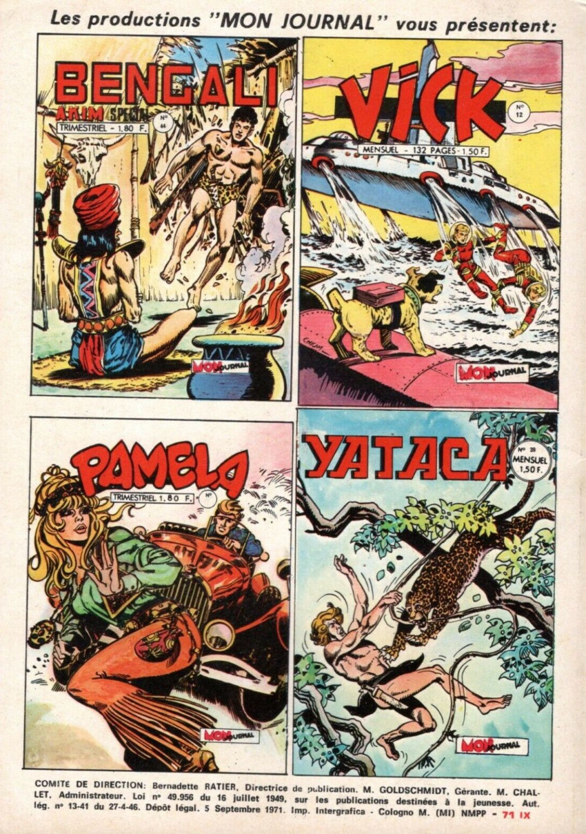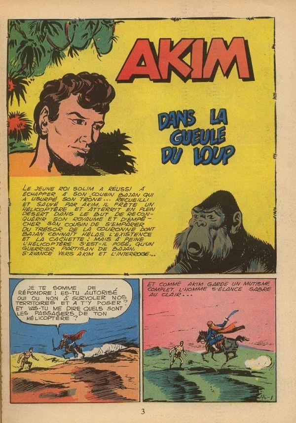 Résumé: Akim : Dans la gueule du loup par Roberto Renzi (sc) et Augusto Pedrazza (des) (62 pl) - L'avis des Animaux par Jac L. (sc et des) (1 pl) - La dynastie des Turville : Le trésor des Turville par Frank Pepper (sc) et Geoff Campion (des) (26 pl).