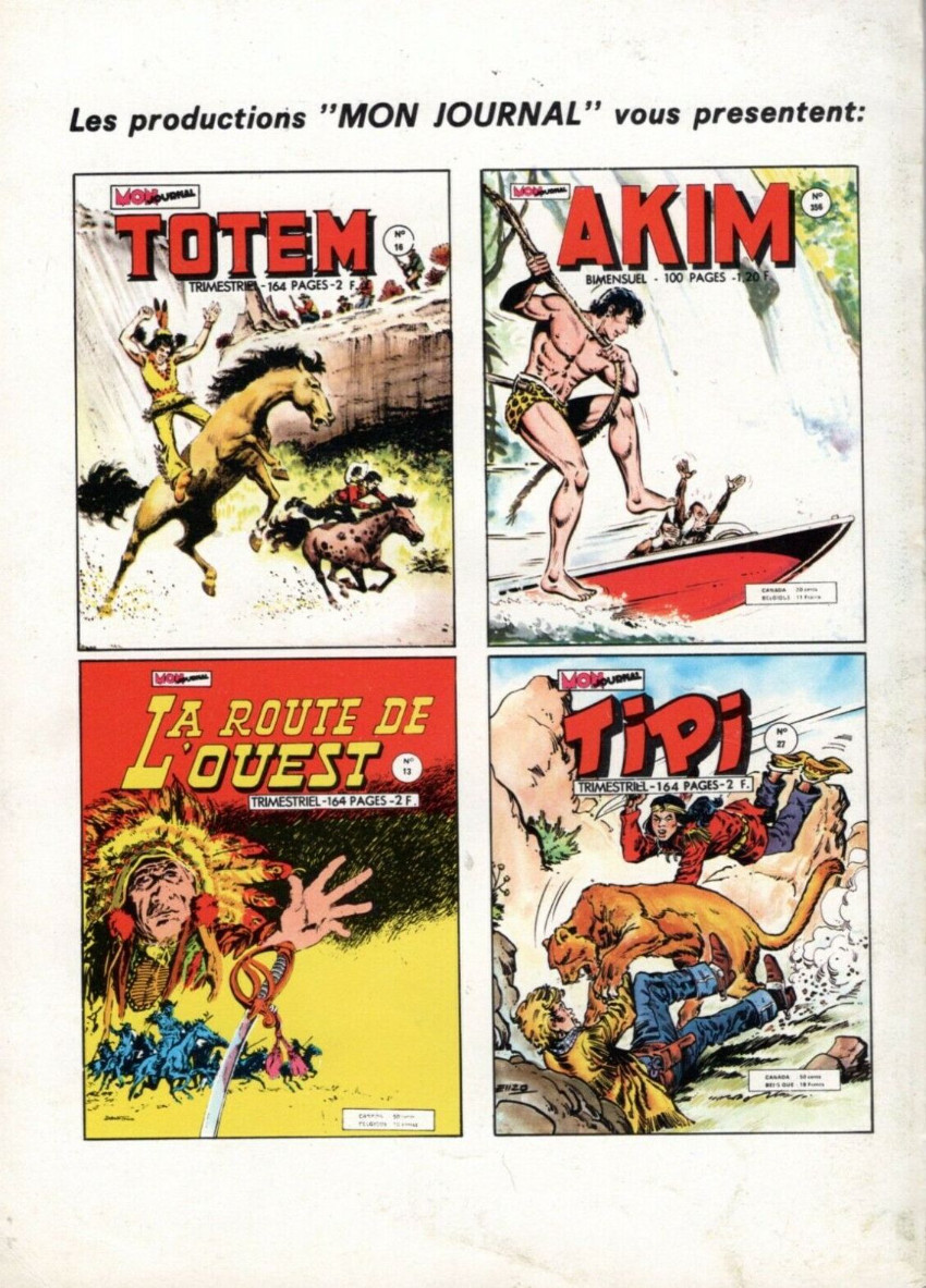 Résumé: Akim : Les étranges habitants des neiges éternelles par Roberto Renzi (sc) et Augusto Pedrazza (des) (54 pl) - Mortadel et Filémon : Complètement timbrés les gars par Ibanez (sc et des) (6 pl) - La dynastie des Turville : N'est pas Sylvestre qui veut ! par Frank Pepper (sc) et Geoff Campion (des) (23 pl).