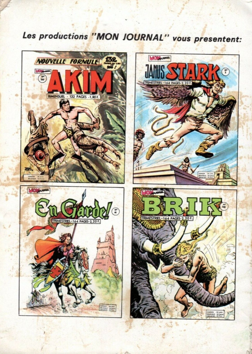 Résumé: Akim : Atomix par Roberto Renzi (sc) et Augusto Pedrazza (des) (60 pl) - Mortadel et Filémon : Et ça fait boum ! par Ibanez (sc et des) (6 pl) - La dynastie des Turville : Un monde fou fou fou... par Frank Pepper (sc) et Geoff Campion (des) (21 pl).
