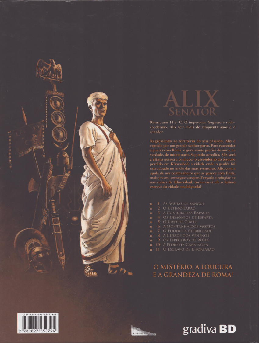 Résumé: Já se passaram demasiados anos desde que Alix pisou pela última vez Khorsabad: muito tempo. Alix, como no passado, é feito prisioneiro. É um senhor local, Barzafarnes, quem ordena o sequestro do senador para provocar uma nova guerra com Roma e encontrar o tesouro mítico da cidade, cujo esconderijo - pensa ele - Alix conhece. Entre lembranças e o dever de evitar um novo conflito, Alix viverá novas aventuras na cidade assíria.