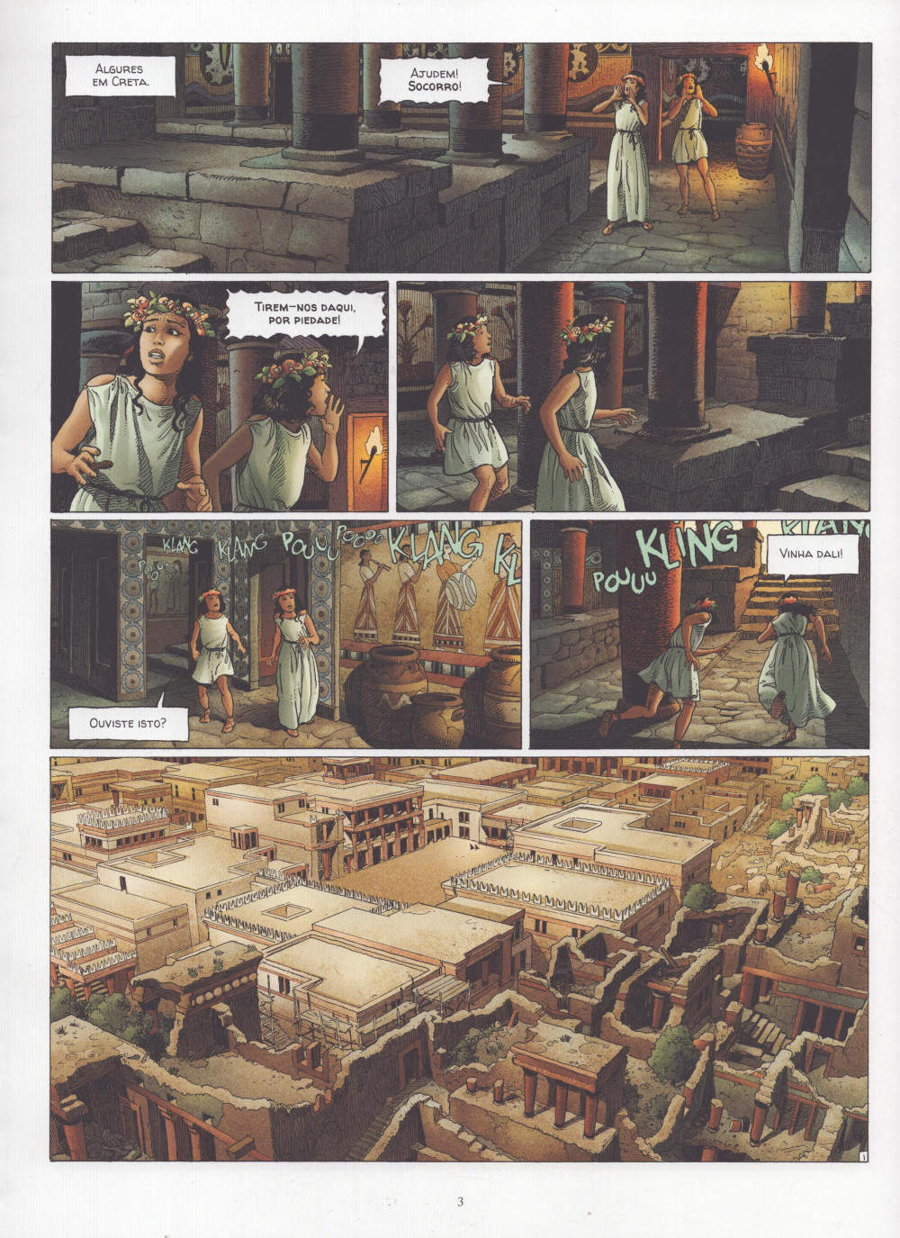 Résumé: Neste episódio, Alix parte em busca da Atlântida, viagem essa que o leva ao arquipélago de Thera. Lá, descobre vestígios sombrios do templo do Minotauro — um local que ele já explorara quando era jovem. Durante a viagem, uma tempestade obriga o barco de Alix a fazer escala numa ilha de piratas. O chefe dos piratas, sedento de riquezas, planeia saquear o templo do deus canibal, ignorando advertências do mal presente no interior da caverna do Minotauro. Elementos sobrenaturais / mitológicos entram em cena: as bolas de fogo incrustadas nas paredes do templo castigam quem profana o lugar. Há perigo oculto, mistério, tesouros e também consequências para a ambição desmedida.