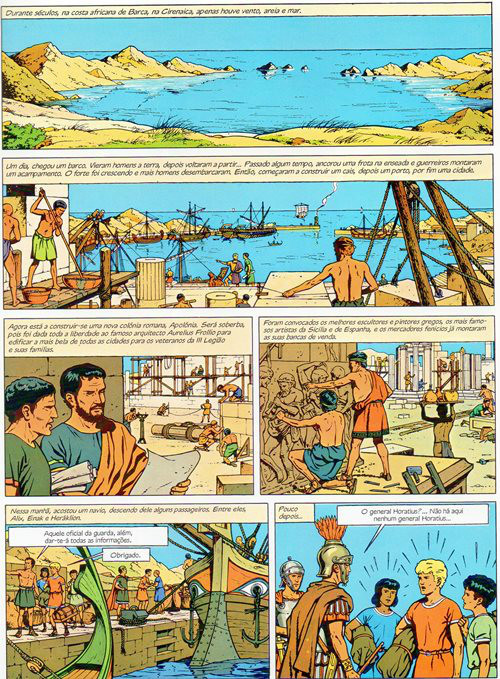 Résumé: Uma carta de Horatius convida Alix e Enak para irem a Apolónia, a magnífica cidade dedicada ao deus da beleza. Os melhores arquitectos e artistas foram incumbidos de erguer uma cidade destinada aos antigos legionários. O general insiste: Heráklion deve acompanhá-los. Mas quando os três jovens desembarcam na costa africana, Horatius não está na cidade em construção. A missiva era falsa, e os rapazes vão ter de esperar muito tempo para regressar a Roma. Embora irritado com aquilo que mais parece uma armadilha, Alix não consegue deixar de ficar fascinado com aquela região da África e interessa-se pelo destino do povo cireneu, subjugado desde a chegada dos romanos. No entanto, a cidade está em polvorosa, pois acabam de descobrir uma estátua de Apolo que faz curas milagrosas. Mas, enquanto instalam o deus selvagem no grande templo, Heráklion desaparece.