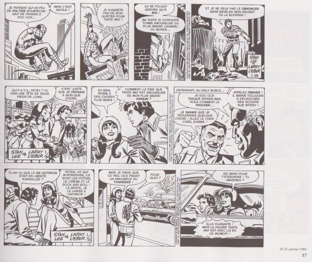 Résumé: Le Docteur Octopus en couple avec Tante May ? Peter Parker va avoir du mal à le digérer ! Le danger rode de tous côtés et même les débuts au théâtre de Mary Jane pourraient s'avérer plus mouvementés que prévu. Ajoutez à ça une aventure de Spider-Man en Latvérie, le pays de Fatalis, et bien d'autres rebondissements. Et encore ! C'est loin d'être fini ! Les deux premiers tomes de cette intégrale des comic-strips publiés dans certains journaux américains, signés Stan Lee et John Romita, ont fait fureur et ont eu droit à deux éditions. Voici enfin la suite ! Un nouveau dessinateur est aux commandes, Fred Kida, mais Stan Lee est toujours là et l'action est toujours au rendez-vous !