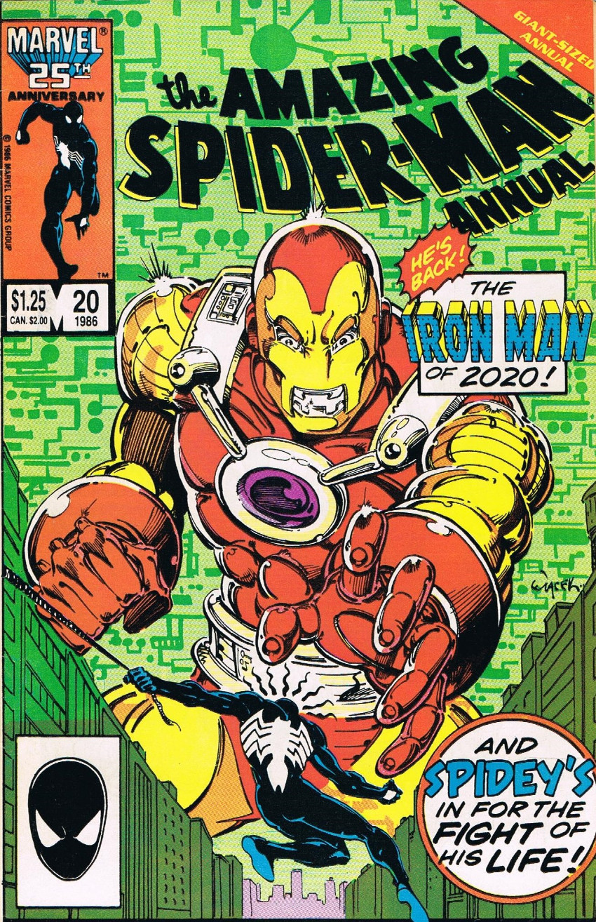 Résumé: The Iron Man of 2020 (aka Arno Stark) is coming to the 20th century! And he's desperately searching for a 12-year old boy! Why? Because this boy will grow into a deadly terrorist and attempt to detonate a nuclear bomb at Stark Enterprises many years later! When the 21st century Shell-head arrives in New York City (circa 1986), he finds the boy in the middle of a battle between the web-slinger and Blizzard! Arno quickly blows away Blizzard and grabs the youth! Victory appears imminent for the futuristic golden avenger! However the boy is under the protection of the wondrous wall-crawler! And that means the Invincible Iron Man and the Amazing Spider-Man are going to throw down in the streets of Manhattan! Wow, beating the present day Iron Man would be a tall order...much less the one from 2020! Good luck Spidey!