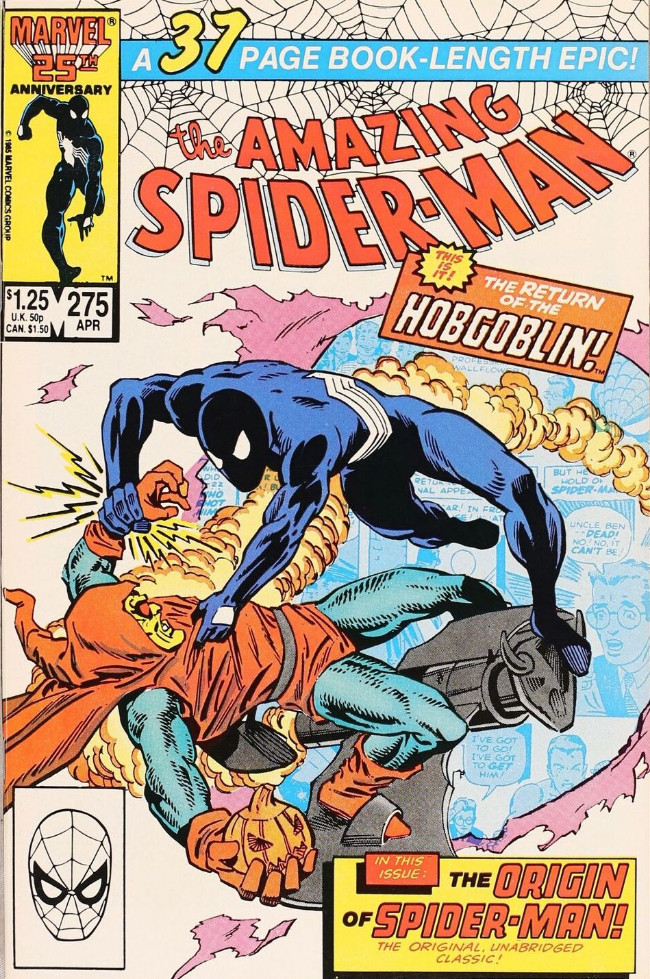 Résumé: The Hobgoblin prepares to bring down Spider-Man. Peter and Aunt May bring Nathan home from the hospital. Peter tells Mary Jane that he is through being Spider-Man and tells her his origin story. Flash smacks his girlfriend around and busts Ned Leeds in the chops when he confronts him about the affair Flash is having with his wife. Hobgoblin takes Sha Shan as a hostage. Mary Jane convinces Peter that he can't quit with the Hobgoblin on the loose so Spidey faces his old foe. Spidey is able to rescue Sha Shan but is brought down by Hobby's new chest plate with a deadly random pattern blaster.