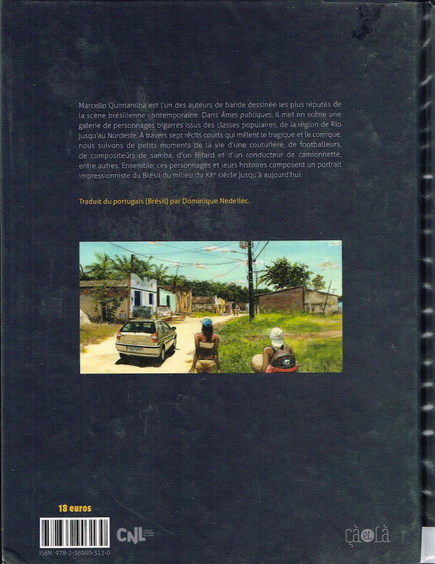 Résumé: Âmes Publiques est le deuxième recueil d'histoires courtes de Marcello Quintanilha après Mes Chers Samedis, publiés chez çà et là en 2015. A travers les sept histoires qui composent ce recueil, Marcello Quintanilha continue sa description du Brésil contemporain, des années 1920 aux années 2000. On y retrouve le goût de cet auteur pour la description de scènes du quotidien, centrées sur des personnages hauts en couleurs et à la langue bien pendue. Les âmes publiques sont celles d'une vieille couturière amie avec sa femme de ménage, d'un enfant des bidonvilles, d'un compositeur de samba, de deux petits vieux... Le recueil comporte également deux grandes histoires autour du football, ou plutôt de footballeurs. La première se déroule dans les années 2000 et met en scène un joueur de troisième zone qui s'invente une carrière de semi-pro et l'autre décrit un jeune et prometteur joueur qui, en 1954, rate sa chance de passer dans une grande équipe à cause du suicide du président brésilien de l'époque, Getúlio Vargas.Alternant histoires en couleurs directes et récits en noir et blanc, découpages hyper dynamiques et structures narratives sophistiquées, Âmes Publiques est une nouvelle démonstration de la virtuosité de cet auteur incontournable.