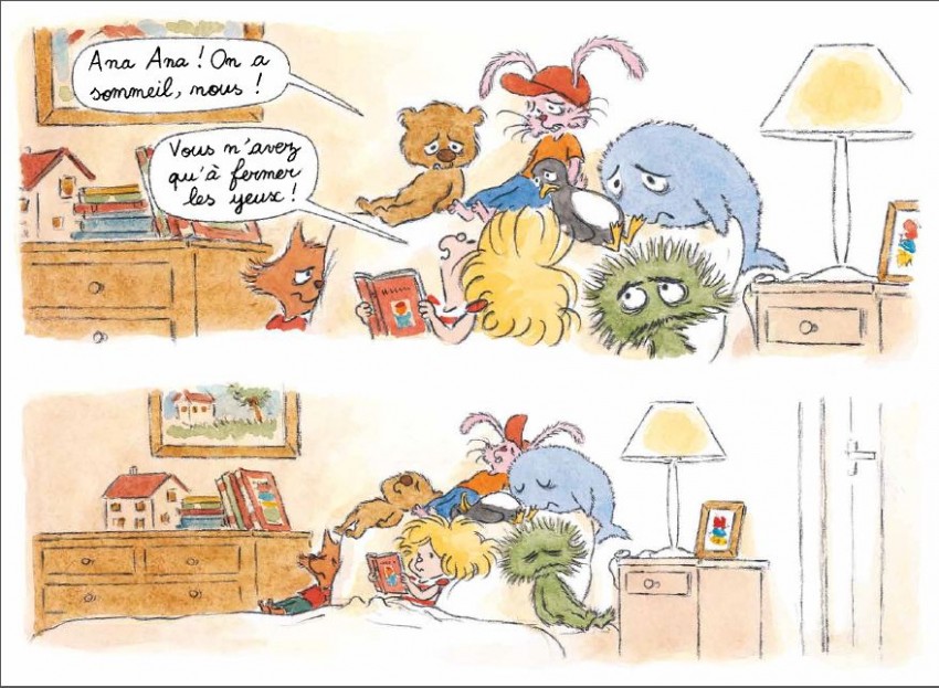 Résumé: Douce nuit, 1er épisode des aventures d'Ana Ana. Il est déjà bien tard, et Ana Ana est encore en train de lire. Ses parents lui ont pourtant demandé d'éteindre la lumière depuis longtemps. Ses doudous, d'ailleurs, aimeraient bien dormir. Mais la petite fille, un brin tyrannique, n'éteint pas sa lampe...