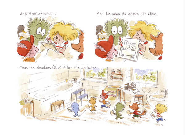 Résumé: Ana Ana ne manque jamais d'idée quant il s'agit de s'amuser ! Aujourd'hui, elle vient d'inventer un nouveau jeu pour elle et ses doudous : ne plus parler avec des mots... mais avec des dessins !