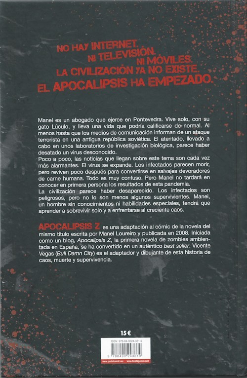 Résumé: Manel es un abogado que ejerce en Pontevedra. Vive solo, con su gato Luculo, y lleva una vida que prodria calificarse de normal. Al menos hasta que los medios de comunicacion informan de un ataque terrorista en una antigua republica soviética. El atentado, llevado a cabo en unos laboratorios de investigacion biologica, parece haber desatado un virus desconocido.