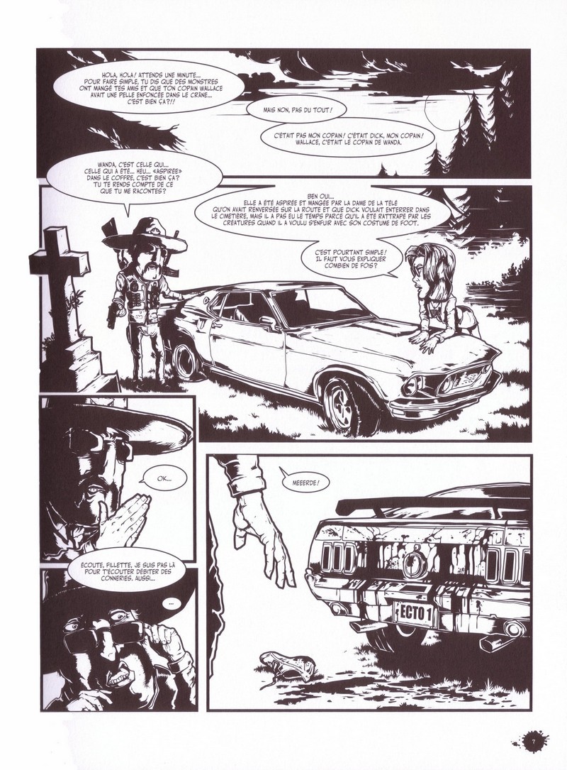 Évidemment, arrivé au quatrième tome, l'effet de surprise s'est quelque peu émoussé. Heureusement, les dialogues sont toujours aussi déjantés et les références immanquablement pertinentes. Malgré tout, une question légitime commence à se poser : à partir de combien de quintaux de viscères de zombies devient-on nauséeux ? Le scénariste a bien dû se le demander puisqu'un certain changement de direction se fait remarquer, le récit se révélant plus linéaire, comme si tous les personnages (difficile de parler de héros dans le cas présent) avaient trouvé leur place. Du même coup, la folie furieuse qui rendait la lecture tellement jouissive baisse d'un cran. Coup de mou ? Lassitude ? Ce n'est quand même pas le cas. Le dessinateur en possède sous le coude, telle la délirante double page façon « au théâtre ce soir » lors de la fuite du manoir. Espérons néanmoins que l'auteur saura mettre un terme à son histoire d'une manière spectaculaire avant de tomber réellement dans la redite et, à l'instar d'un James Braddock trop rapiécé, dans un ridicule qui pourrait finir par ternir cette œuvre détonante.