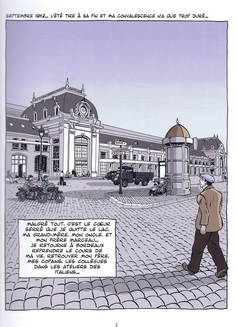 Après la guerre d'Espagne traitée de manière touchante, réaliste et avec un brin d'ésotérisme, voici l'occupation "normale" à Bordeaux. Loin des grandes épopées, cette série nous montre le temps de la jeunesse de nos (grands) parents, sans pathos, mais avec une force exceptionnelle. Les personnage principaux ne sont ni des héros, ni des lâches, mais de simples français préoccupés par le quotidien et les drames qui forment la toile de fond. Pas de scènes de batailles, mais une angoisse ambiante, parfois lourde, de temps en temps entrecoupée par les rires et les émotions de la jeunesse l'époque. Bruno Loth fait pour moi partie des grands.BDGest 2014 - Tous droits réservés
