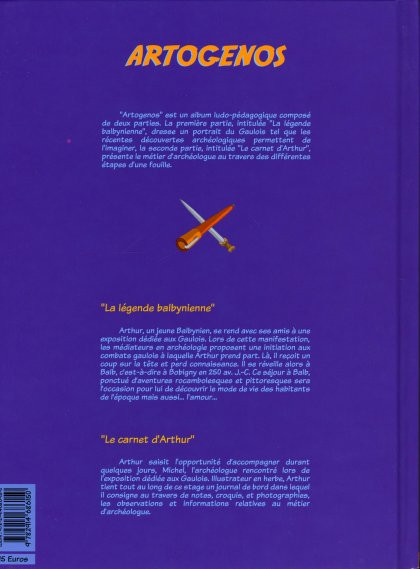 Résumé: "Artogenos" est un album ludo-pédagogique composé de deux parties. La première partie, intitulée "La légende balbynienne", dresse un portrait du Gaulois tel que les récentes découvertes archéologiques permettent de l'imaginer, la seconde partie, intitulée "Le carnet d'Arthur", présente le métier d'archéologue au travers des différentes étapes d'une fouille