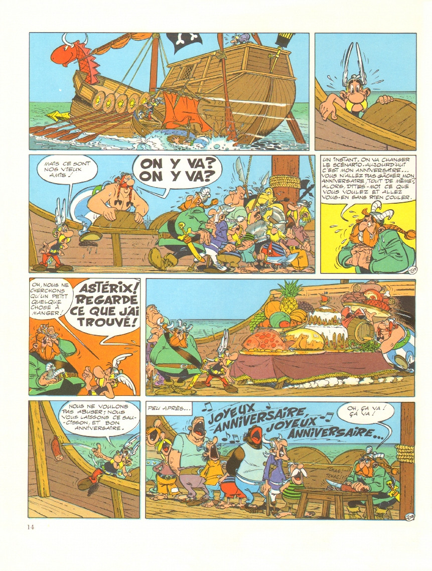 Je trouve cet album un peu plus faible que les autres ; peut-être que l’inspiration de Goscinny se tarissait. Tout d’abord, le scénario me paraît assez mince et peu crédible : Astérix et Obélix vont pêcher du poisson en mer, mais se perdent et découvrent sans le savoir l’Amérique. Cela paraît quand même un peu gros, même si l’on est dans la caricature. L’album est un hommage à une autre série d’Uderzo et Goscinny : Oumpah-Pah le peau-rouge. Goscinny joue dans cet album sur le thème de la méprise : Astérix et Obélix sont persuadés qu’ils sont dans un camp romain et s’interrogent sur les gestes des Amérindiens. Cela donne lieu à des gags plus ou moins bons. La deuxième partie de l’histoire est meilleure. Repêchés par un navire viking, les deux Gaulois sont emmenés dans le grand Nord, alors qu’on les prend pour des Indigènes. Les auteurs se lâchent avec de bonnes références à Hamlet et au Royaume de Danemark. Petite curiosité : on notera que le banquet final se déroule avec Assurancetourix, mais sans Ordralfabétix qui ne veut pas goûter aux poissons pêchés par Astérix et Obélix.Le 12/05/2023 à 17:23:32
