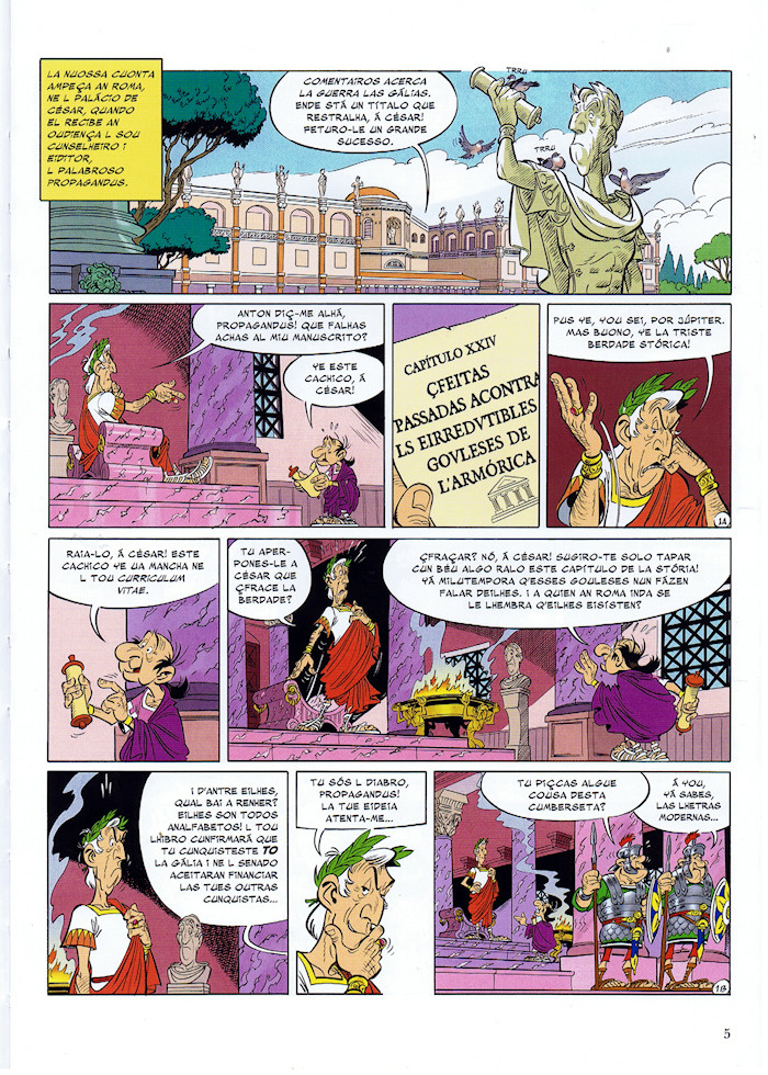 Résumé: Stamos an 50 antes de Jasus Cristo. Toda la Gália stá adominada puls romanos... Toda? Nó! Ua aldé chena d'eirredutibles gouleses rejiste inda i siempre al ambasor. Cumo ye possible que ua pequerrixa aldé perdida pa l meio de la Gália seia capaç de rejistir a un eisército tan fuorte? L que fai cun que seia ambencible? Ua parte de la repuosta stá na receita de la pocion mágica, porparada por Panoramix, l druida.