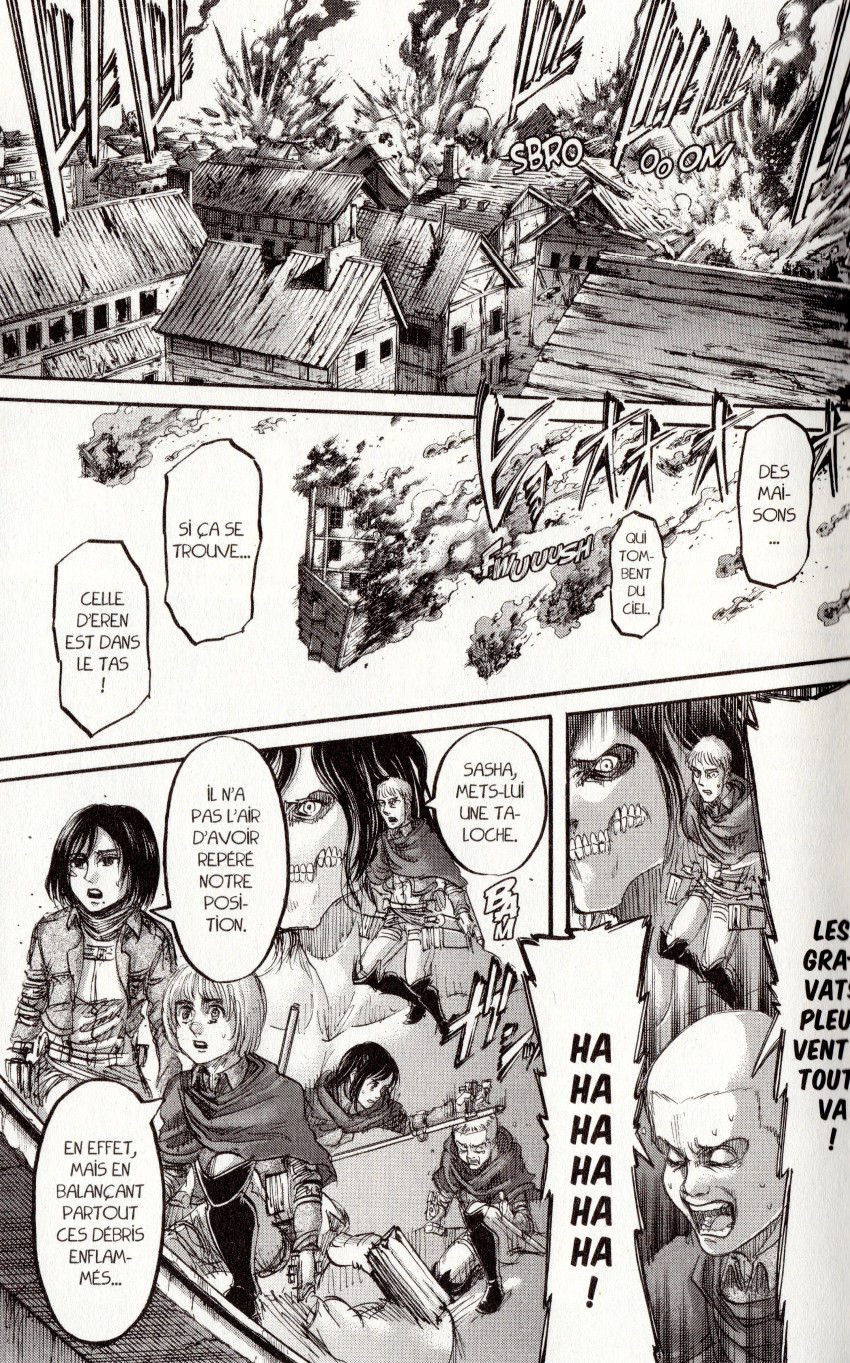 Résumé: Bien décidé à découvrir le secret sommeillant dans le sous-sol de la maison Jäger, le Bataillon d’exploration doit avant tout reprendre le mur Maria, et livre pour cela une lutte acharnée contre Reiner, Bertolt et le Titan bestial. Eren et les siens parviendront-ils à vaincre cet infernal trio pour enfin accéder à de nouvelles révélations ?