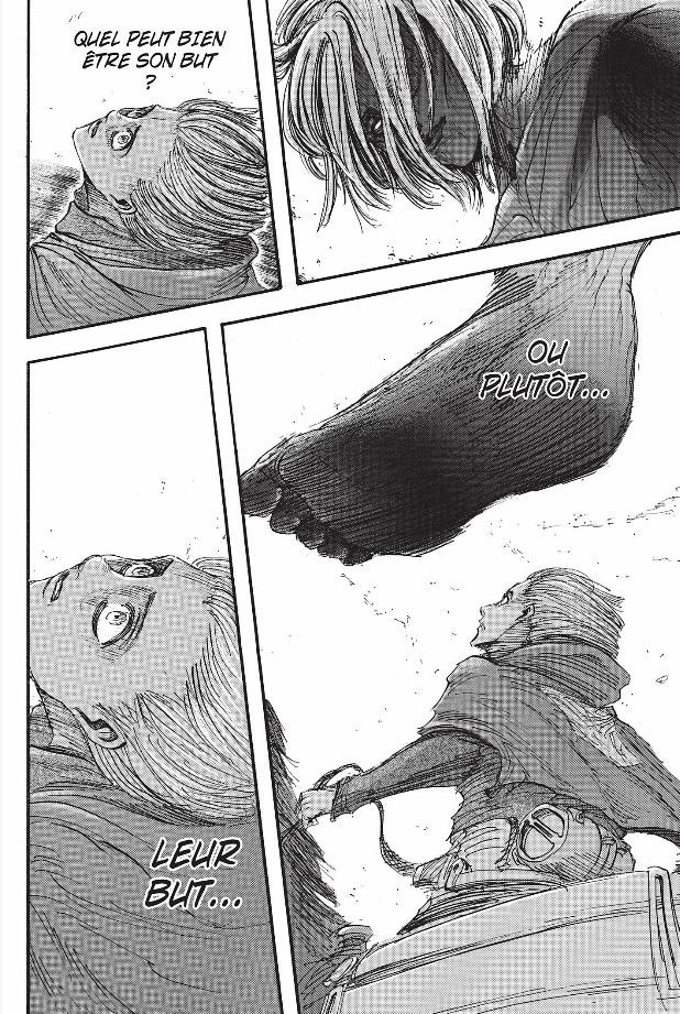 Résumé: Le Bataillon d'exploration a entrepris un exercice à l'extérieur des Murs auquel participe bien évidemment Eren, mais aussi Armin et Mikasa. Tout semble bien se passer, jusqu'à ce qu'un "Titan féminin" fasse irruption et menace de dévaster toute la formation...