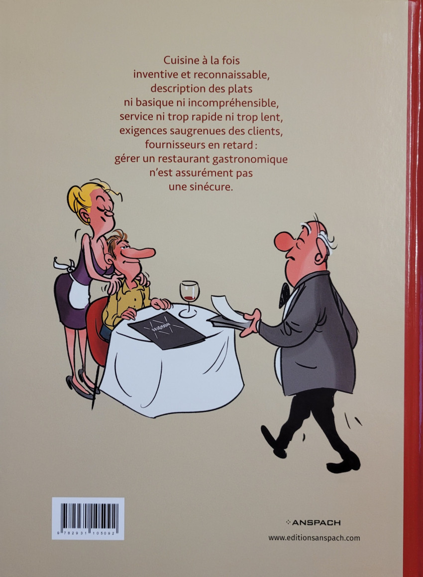 C'était une lecture simple, mais plaisante me concernant. Travaillant dans la restauration, je me suis retrouvé dans certaines situations et j'ai retrouvé aussi les bêtises que peuvent déblatérer les clients qui ne connaissent rien du métier, qui veulent tout et tout de suite. J'ai aimé les différents gags, ils n'inventent rien, ne réinventent rien, mais ça fonctionne et on passe un moment agréable. Comme toutes les lectures culinaires, on a envie de profiter des plats de cet album. Les dessins sont chouettes et correspondent bien à l'image qu'on se fait d'un album de ce genre. Bien entendu, tout est poussé à l'extrême, mais ça reste réaliste vous pouvez me croire. Les serveurs ne sont pas à la masse constamment, mais ils le sont, ils s'adaptent aux clients. Le chef fait du mieux qu'il peut, quand on est en cuisine, on essaye toujours de satisfaire le client, du moins j'ai toujours vu le métier ainsi et finir comme le chef de la Bd, c'est tout à fait envisageable quand on voit la bêtise des gens aujourd'hui. Bref, c'est une lecture amusante, savoureuse et plaisante.BDGest 2014 - Tous droits réservés