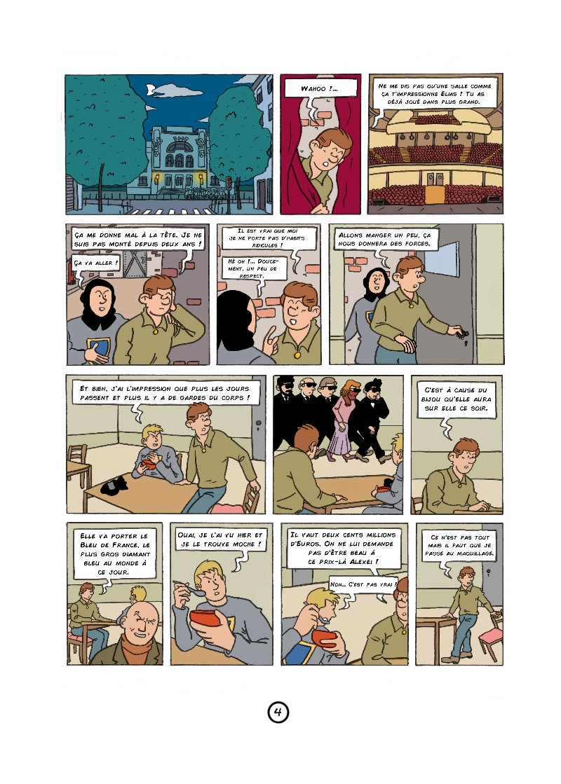 Résumé: Le Bleu de France, plus gros diamant bleu au monde et volé par les Anglais en 1792. Après des siècles de mensonge le Royaume Uni décide de rendre le bijou et le présentera à la presse lors d'une pièce de théâtre. Et devinez qui est la vedette du spectacle? Elias, notre comédien journaliste. Malheureusement ce bijou ne restera pas longtemps sur le sol Français puisqu'il est de nouveau volé le soir de la première. Elias partira jusqu'en URSS afin de trouver le coupable et surtout devra faire face au terrible KGB.