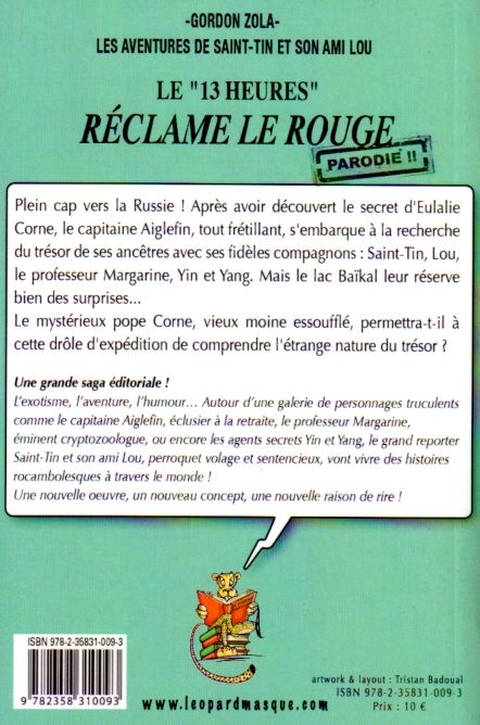 Résumé: Plein cap vers la Russie ! Après avoir découvert le secret d'Eulalie Corne, le capitaine Aiglefin, tout frétillant, s'embarque à la recherche du trésor de ses ancêtres avec ses fidèles compagnons : Saint-Tin, Lou, le professeur Margarine, Yin et Yang. Mais le lac Baïkal leur réserve bien des surprises...