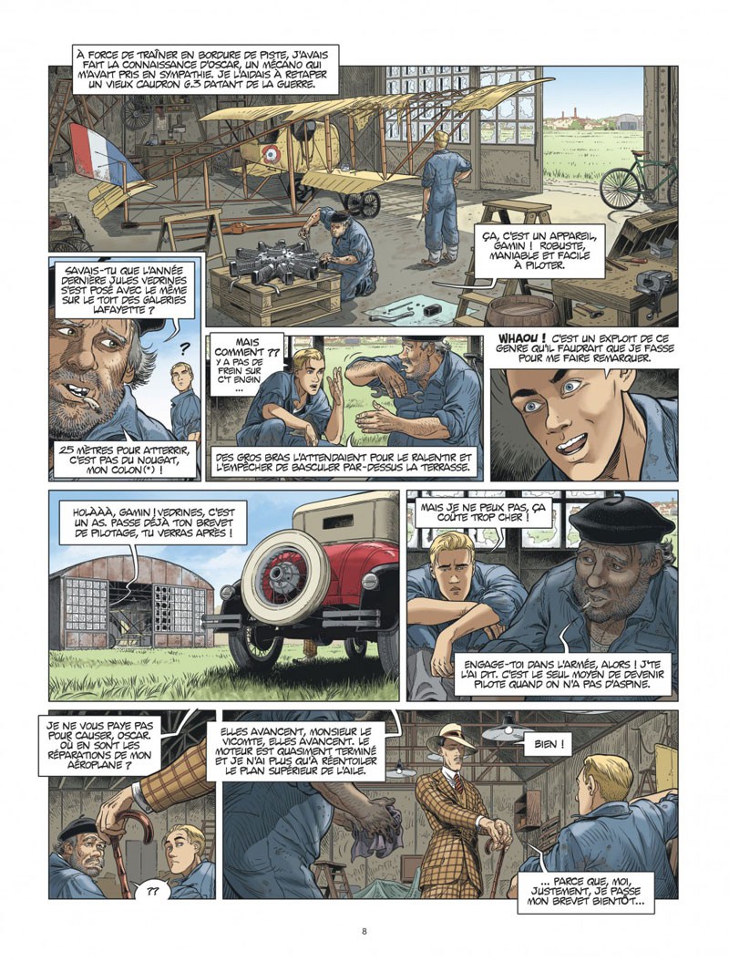 J'ai mis le temps pour lire ce tome 2. J'avais été tellement emballé par le 1er tome, que je redoutais d'être un peu déçu par sa suite. Que nenni ! Que ça fait du bien de lire un bon album, un de ceux que l'on lit, et plus tard que l'on relit avec toujours autant de plaisir. Au de la du dessin, qui est remarquable de beauté et de lisibilité, le scénario se lit d'une traite, tellement il nous emmène dans cet univers du passé, une époque pas édulcorée, ou tout n'était pas rose, mais où tout semblait possible, où la France découvrait l'aviation. A la rigueur, les auteurs pourraient se passer de ce lien, en début et en fin de chaque album, avec "Tramp", tellement cette série dérivée est bonne.Le 28/02/2017 à 17:45:21
