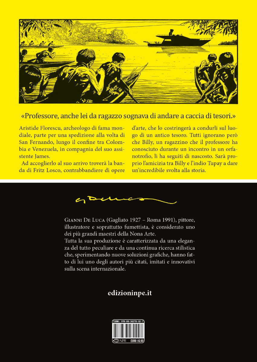 Résumé: Aristide Florescu, archeologo di fama mondiale, parte per una spedizione alla volta di San Fernando, lungo il confine tra Colombia e Venezuela, in compagnia del suo assistente James. Ad accoglierlo al suo arrivo troverà la banda di Fritz Losco, contrabbandiere di opere d’arte, che lo costringerà a condurli sul luogo di un antico tesoro. Tutti ignorano però che Billy, un ragazzino che il professore ha conosciuto durante un incontro in un orfanotrofio, li ha seguiti di nascosto. Sarà proprio l’amicizia tra Billy e l’indio Tupay a dare un’incredibile svolta alla storia.
