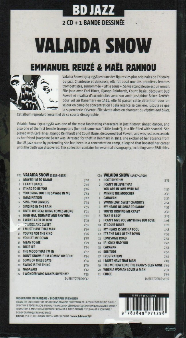 - Info édition : Accompagné de 2 CD reprenant la quasi intégralité de l’œuvre de Valaida Snow.