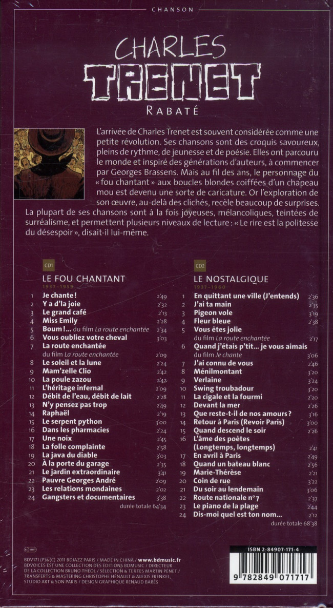 Même s'il l'a abondamment cultivé, Charles Trenet reconnaissait que son personnage de "fou chantant" aux boucles blondes coiffées d'un chapeau mou était une caricature. Au-delà des clichés, l'exploration de l'oeuvre de Trenet est passionnante car pleine de surprises : on se rend compte que la plupart de ses chansons, à la fois joyeuses et mélancoliques, ont plusieurs niveaux de lecture. "Le rire étant la politesse du désespoir", comme il le disait lui-même...