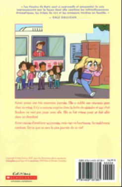 Résumé: Bande dessinée dérivée de la populaire série "Le club des Baby-Sitters", qui relate les aventures de Kristy, Mary Anne, Stace, Claudia, Mallory et Dawn, des adolescentes d'une douzaine d'années ayant fondé un club de gardiennage. Bien que toujours présentes, ces héroïnes cèdent ici le devant de la scène à leurs jeunes soeurs, que l'on retrouve dans des intrigues où s'entremêlent aventures et tranches de vie familiale. On retrouve dans cet opus Karen Brewer, véritable casse-cou de près de sept ans, qui a l'impression que la malchance la poursuite depuis sa fracture du poignet (cf. opus précédent). Malchance qui atteint son comble aujourd'hui, alors qu'elle se réveille sur le sol après avoir fait un terrible cauchemar et qu'elle découvre que son émission préférée est annulée, qu'elle a oublié son nouveau jean chez sa mère, qu'il n'y a aucune surprise dans sa boîte de céréales, que son chien refuse de jouer avec elle, que son chat la fuit en se réfugiant dans un arbre et qu'elle se dispute avec ses amis, qu'elle ne peut accompagner à vélo pour faire un pique-nique au bord de la rivière. La fillette rejette injustement sa colère sur son petit frère, qui s'efforce pourtant d'être gentil avec elle. Heureusement, les interventions bienveillantes et patientes de différents membres de la famille lui permettront de terminer la journée sur une note joyeuse, dont elle profite pour présenter ses excuses à tous ceux qu'elle a blessés.