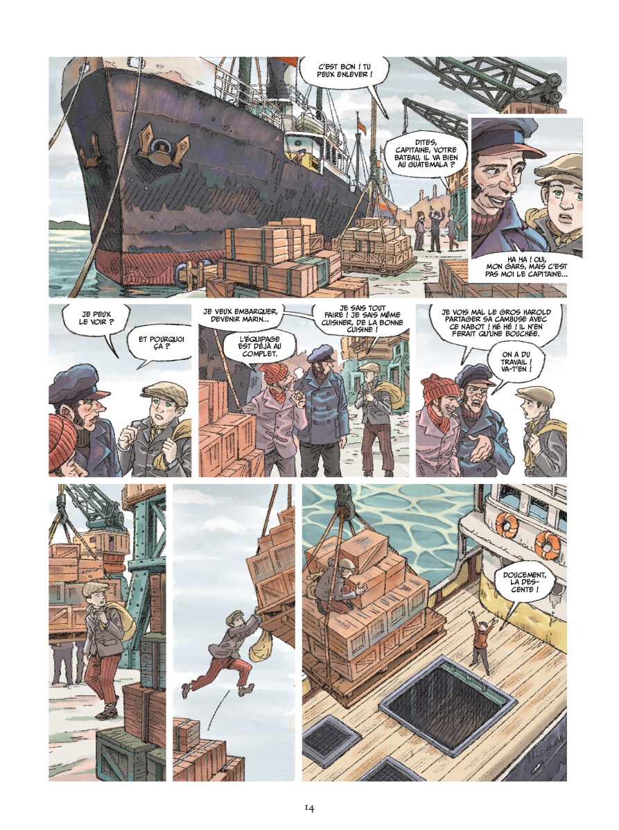 Travaillée depuis longtemps en géohistoire de l'alimentation, la banane est l'exemple-type du fruit mondialisé. Cependant, les acteurs qui ont fait de cette baie un produit phare et incontournable sont moins connus, alors que leur parcours est souvent singulier. C'est le cas de celui qui restera célèbre sous le surnom de Sam, the Banana Man, dont la vie est une véritable épopée à travers le début du vingtième siècle. À partir d'une documentation conséquente, Jack Manini a bâti un scénario qui a le mérite d'éviter de chercher à caser l'entièreté de ses sources. Il pointe les moments importants de la jeunesse de Samuel Zemurray pour souligner la façon dont celui-ci s'est construit. Surtout, le scénariste a choisi de ne rien cacher du contexte, pour dévoiler les coulisses du monopole bananier et ses conséquences sur la vie politique, économique et sociale en Amérique centrale en suivant Sam et ses comparses Tommy et Jimena, la fille d'un planteur. Le trio permet d'insérer un triangle amoureux qui vient densifier et romancer l'intrigue.