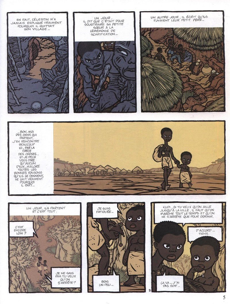 Les deux personnages principaux, Leila et Celestin, n'ont pas une vie facile. Néammoins il se dégage une athmosphère positive du récit, due à la voix off en premier lieu et aux dessins ensuite. La réalité est crûe dans cet ouvrage, les personnages ne sont pas enjolivés, entre le missionnaire irlandais qui baptise sans consentement, le père de Leila très "protectionniste", le français que rencontre Leila, un gars plutôt médiocre... mais on s'attache à pas mal de ces personnages au fil des pages, après tout ils sont humains...
