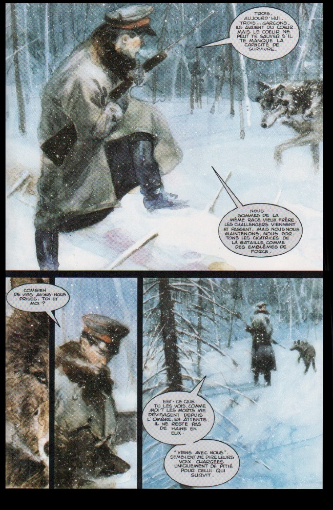 Un vétéran de la guerre du Vietnam interroge Hans Von Hammer, le Baron Rouge, à l'orée de la mort en se faisant passer pour un journaliste. En réalité il cherche à exorciser la félure qui s'est faite en lui lors des moments horribles qu'il a vécus au Vietnam.Von Hammer l'a senti et, comme si lui aussi cherchait à se confier, à exorciser son propre passé, à pardonner quelqu'un pour se pardonner lui-même, il va lui conter des moments de guerre qu'il a vécus. Au bout de ce voyage dans le passé et dans l'horreur de la guerre, il y a pour Mannock (l'ancien du Vietnam) le pardon et la libération et pour Von Hammer le repos de la mort. George Pratt n'est ici pas tout à fait dessinateur mais plutôt peintre. Autant dire que l'ensemble de son travail graphique est exceptionnel. Le sujet est, en plus de cela, maitrisé et intéressant quoique peut-être, au premier abord, le traitement des dialogues est un peu impersonnel. Mais peut-être est-ce ce lettrage carré et ces bulles trop parfaites qui donnent cette impression.Le 02/11/2005 à 08:22:30